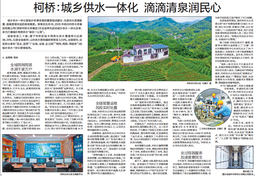《浙江日报》专版报道!柯桥:城乡供水一体化 滴滴清泉润民心